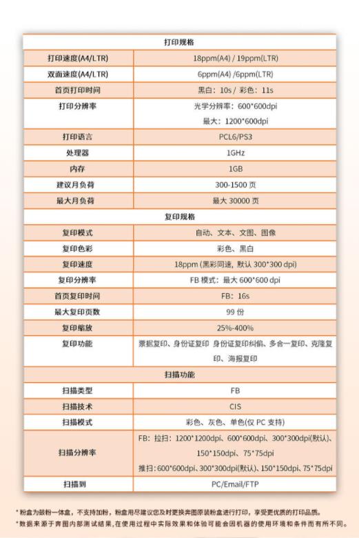 彩色打印速度(頁/分鐘 ppm)  :   18